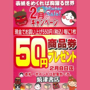 2月8日(日)まで、現金で550円(税込)お買い上げごとに 50円商品券をプレゼントしております!